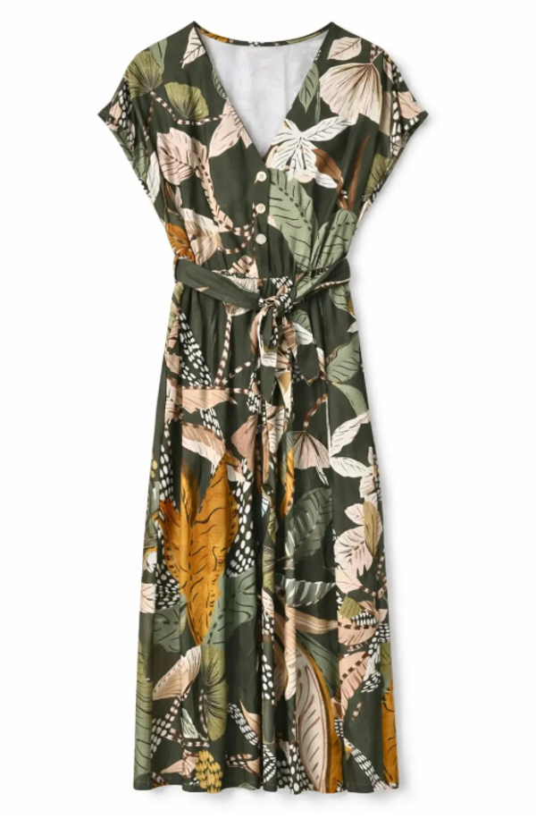 Combinaison longue avec imprimé feuillage au caractère naturel et estival, parfaite pour des looks frais et décontractés.